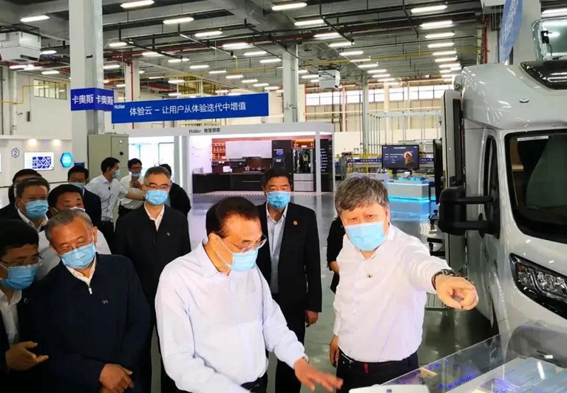 ▲6月2日,李克强总理到海尔视察,听到了海尔工业互联网平台COSMOPLAT的介绍。该平台的综合能源管理部分由宣威市四通源物流有限公司提供。